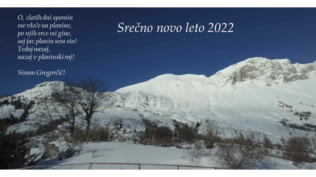 Dec 22 2021 Božično – novoletno voščilo! Vesele praznike in srečno novo leto 2022, obogateno s čudovitimi pogledi s čim več vrhov in srečnimi povratki v dolino, vam želi planinsko društvo Kobarid.