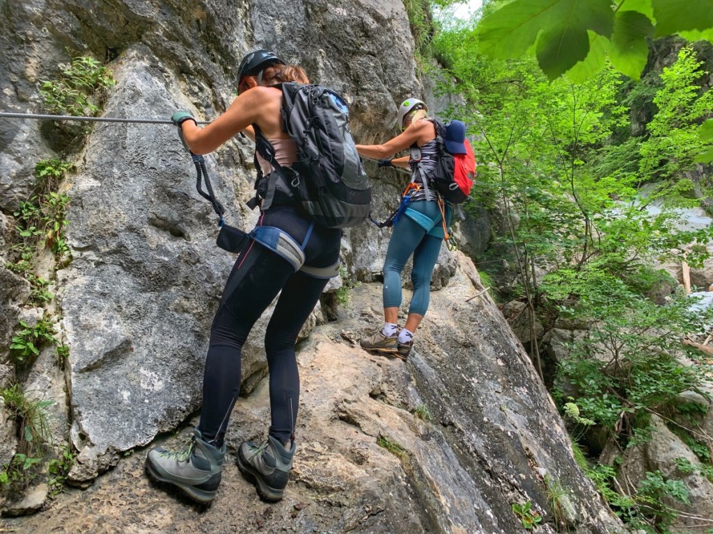 Pred vstopom v zavarovani del poti (težavnost do B/C) se opremimo s čelado in samovarovalnim kompletom. Priporočljiva je tudi uporaba plezalnih rokavic. V začetku se zavarovana pot strmeje vzpne preko nekaj balvanov, v strugi potoka Hladnik. Na težjih mestih nam je poleg jeklenice v pomoč tudi kakšen klin in manjša skoba.