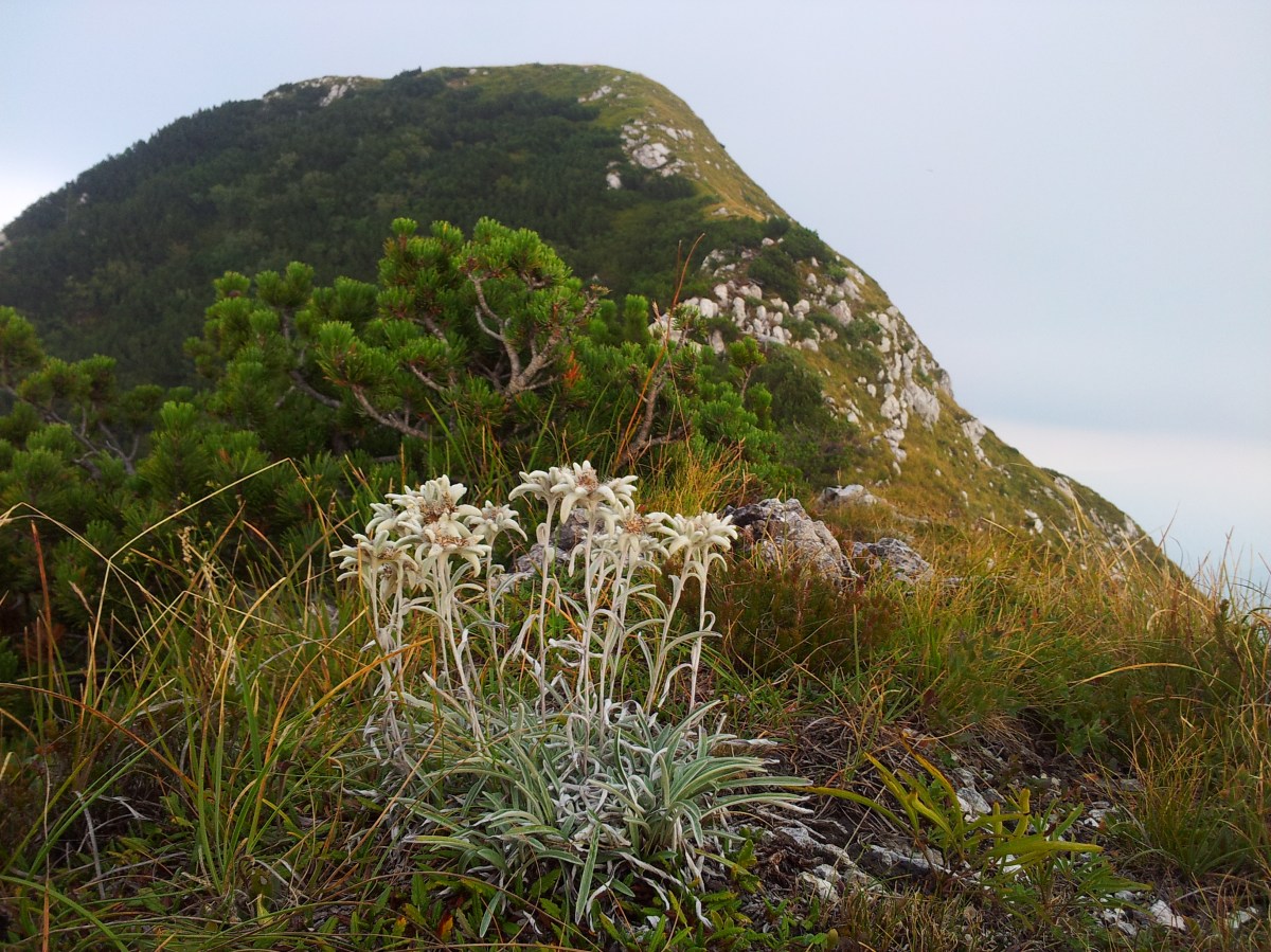 Planike (Leontopodium alpinum) v ozadju Gabrovec(Gabruc) (1630m) Prejšnji Naslednji Planike (Leontopodium alpinum) v ozadju Gabrovec(Gabruc) (1630m)
