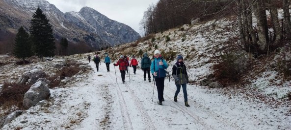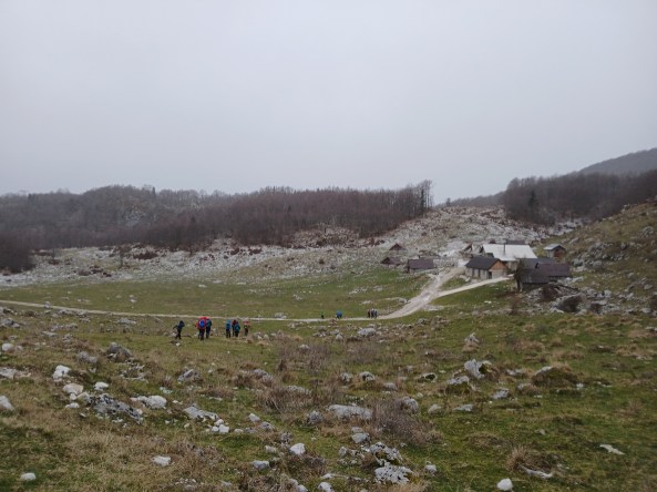 Vsi udeleženci smo se srečali pri koritu nad Drežniškimi Ravnami, popili topel čaj, pojedli slastno